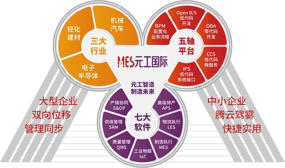 元工国际作为国内领先的自主知识产权智能制造软件供应商,携元工制造执行系统MES、元工质量管理系统QMS、元工高级排产排程系统APS、元工供应商管理系统SRM、元工产销协同系统S&OP、元工物流执行系统LES、元工工业物联系统IoT等核心产品矩阵重磅登场,深度诠释工业软件作为数字化转型“核心引擎”的创新价值,为中国工业高质量发展注入强劲动力。